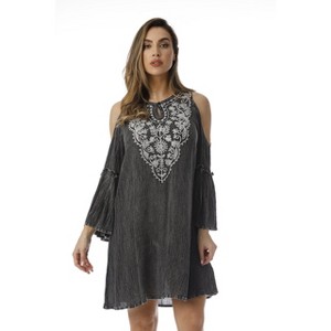 • CUTE MEETS CHIC: Make dressing down an extra-stylish affair in this cold shoulder embroidered dress. Youll love the beautiful embroidery, the tie keyhole front, flirty cold shoulder-cut, and beautiful bell sleeves that create a boho chic look to crown any casual occasion.