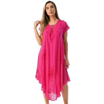 • UNIQUELY BEAUTIFUL TOUCH: Weve designed this beach dress cover up to make any outing a head-turning affair. The sundresses for women come in striking denim look or acid wash accentuated by intricate embroidery and lace up neckline.