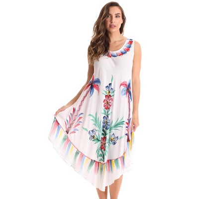 • BREEZILY COMFY: Have fun in the sun with our hand painted summer dresses. Weve used woven crepe fabric made of 100% rayon to create a flowy sundress thats comfortably lightweight and incredibly soft to complement the beautiful weather.