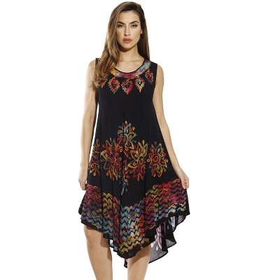 IT'S THE PERFECT DRESS FOR THE HOT SUMMER HEAT Comes with everything you'll ever need! Deciding what to wear when it's simmering hot outside is not an easy task, but now you won't have anything to worry about. It's crucial you can throw on a lightweight dress capable of letting the heat escape from your body, and you also want one with the ability to keep most of your skin out of the sun. The sleeveless designs add a nice touch with the unique batik patterns. It will also make you look gorgeous too! The batik method used for creating this beautiful summer dress is sure to turn heads, so you'll look at your very best while feeling completely comfortable at the same time. Riviera Sun appreciates everyone has different tastes in style, so we've tried to provide enough variety of patterns to suit your individual style. With our loose-fitting dresses ranging in sizes between S-3x, you can also be sure you'll look stunning even if you have a curvy body shape. Do you want a batik cover up dress that: - Is perfect for the beach but also casual enough for sitting in restaurants. - Protects you from the sun while keeping you feeling cool and refreshed. - Will fit you perfectly even though you might have a curvy figure. - Shows off just enough skin so you're not totally covered up. - Is an amazing piece of clothing for wearing when you've stepped out of the water. You might have been envious seeing other women throwing these kinds of summer dresses on in the past, so now it's your turn to buy the best one of them all. Click 'Add to Cart' now!