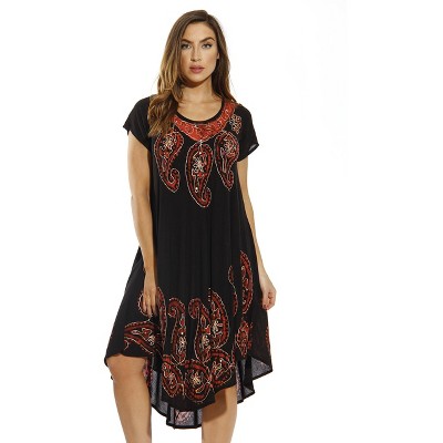 A CUTE DRESS YOULL GET TO WEAR IN SO MANY WAYS 3 Ways to Wear Looking for a cute short dress to crown that casual day out or trip to the beach? Upgrade your wardrobe with one that treats you to stylish versatility! You can wear this pretty number as an off shoulder dress for a fun and flirty look, as an on shoulder dress with your favorite flats or sandals, and even as a coverup for your bathing suit or bikini. Youll love the soft 100% rayon challis woven fabric that dries quickly and keeps you cool during that sunny day. Stay Trendy Turn a couple of heads and inspire a double take or two as you get on with your day! Nothing says effortless casual style quite like a bit of bohemian flair. And weve brought that boho vibe to life with beautiful embroidery and cute tassel ties. Whether you wear it to the beach, on that dream tropical vacation, while gracing that pool party or simply running some errands, youll be exuding bohemian fabulosity all through. Here are more reasons to love this versatile short dress: Has smocking at the top for an easy fit. - Available in S-3X to fit the petite to the plus sized. - Handles well in the wash to retain its look and shape. - Made with great attention to detail for a lovely look. - Backed by a no-hassle, 100% money-back guarantee. Click Add to Cart now to experience versatile style completely risk-free!