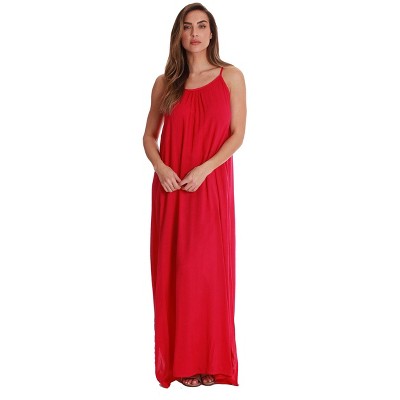 Oh youll want to go everywhere in this maxi dress! Every little detail is designed to make you feel sexily confident. Youll absolutely love the open scoop back with detailing to crown any occasion, side slits at the bottom give the dress beautiful movement as you walk about, and the individually tie dyed design makes every piece as unique as it is stunning. Choose from our range of beautiful color choices to find a maxi dress that will be the highlight of your summer wear. Heres why this maxi dress deserves a spot in your closet: - Individually tie dyed by hand for a look you wont find elsewhere. - 100% rayon fabric handles beautifully in the wash. - detailing on the open scoop back for a stylish touch. - Available in S-3X to fit just about any body shape and size. - Can be worn as both a summer dress and beach cover up. Whether youre lounging by the pool or enjoying a sunny day out in town, count on Riviera Suns maxi dress for an unmatched mix of style and comfort.