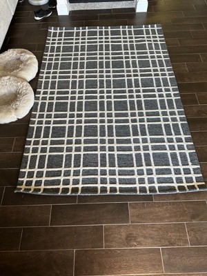 [This review was collected as part of a promotion.] This rug is gorgeous! The gray is a medium to dark gray and the white lines are crisp, the pattern is nice. It’s a very strong durable rug, not flimsy , and does not move around on the carpet.