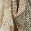 Enticing and ecological this Rizzy Home Neutral Ivory, Beige, and Brown Reversible Striped Throw Blanket is made from 100-percent recycled PET fibers. Soft and durable, this piece can be both machines washed and dried for carefree beauty. The woven fabric creates a salvage edge on two sides and hand-tied fringe graces the two ends of the throw -- an inviting addition to any room in your home décor.