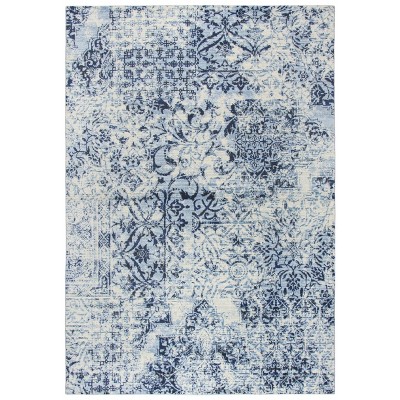 [This review was collected as part of a promotion.] We have similar rugs in the house, so I was very excited to add to a different area. So far this material has exceeded my expectations. The colors are vibrant and bright the different tones of blue, and grey really make the room feel very sophisticated. The pattern is very well aligned, and overall it looks and feels more expensive one of the things so far that I really enjoy is that it doesn't have twirled edges and it lays perfectly on the floor.