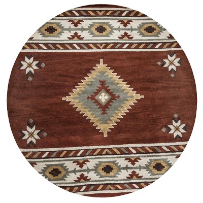 Infuse a rustic southwestern charm to your space with this elegant Native American inspired rug by Alora Decor. Featuring hues of Red, burgundy, tan, sage, and teal colors, this expressive hand-tufted rug will highlight your space with precision. Made with 100-percent wool, this tasteful rug will add inspiration to any room in your space.