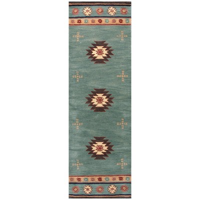 Harmonize your room with this stunning neutral ivory, tan, aqua, and Gray Alora Décor Ryder Southwestern Rug. Hand-tufted from 100-percent wool to represent the fine detail of Native American culture in the southwest, it will be warm and inviting while calming the soul. Hand-serged edges with matching yarn completes the clean lines and look.