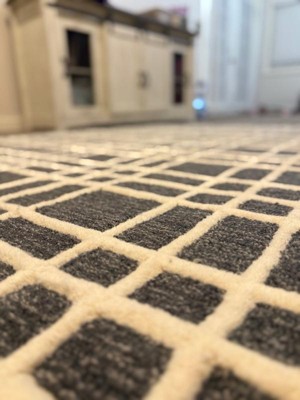 [This review was collected as part of a promotion.] This rug is gorgeous! The gray is a medium to dark gray and the white lines are crisp, the pattern is nice. It’s a very strong durable rug, not flimsy , and does not move around on the carpet.