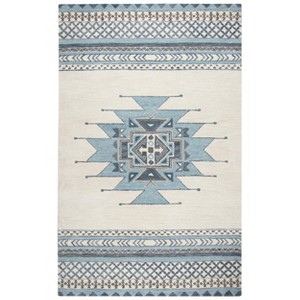 Harmonize your room with this stunning neutral ivory, tan, aqua, and Gray Alora Décor Ryder Southwestern Rug. Hand-tufted from 100-percent wool to represent the fine detail of Native American culture in the southwest, it will be warm and inviting while calming the soul. Hand-serged edges with matching yarn completes the clean lines and look.