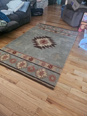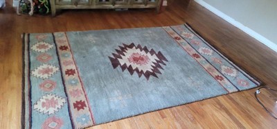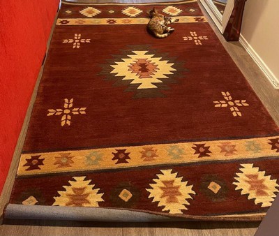 [This review was collected as part of a promotion.] Rizzy Home Southwest 5' x 8' Blue Wool Rug The lure and symbols of age-old Native American rug weaving has been captured in this Rizzy Home Southwest Rug. This piece is hand-tufted with 100-percent wool using a color pallet of blue, tan, burgundy, grey, and brown. This rug's ultra-dense construction and cut loop finish will feel soft, yet firm under foot -- a perfect addition to your lodge style cabin or tribal style home décor.