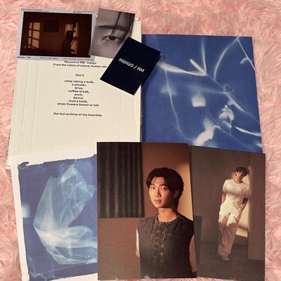 - The 1st solo album Indigo by RM of BTS is officially here. Indigo includes different tracks in collaboration with various artists that portray RM's prevailing thoughts. Contents of the album include a CD, CD Envelope, Outbox, Booklet, Postcard, Photocard (random 1 of 3), Fabric Card, Instant Photo and Poster. Dimensions: 258 x 176 x 26 mm.