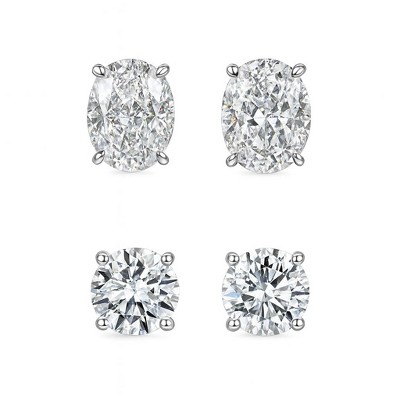 RMZ GOLD NYC Gold Sterling Silver Stud Earrings Cubic Zirconia Men Women 2PC Earrings Set