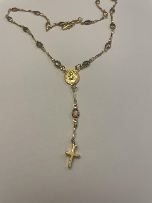 RMZ GOLD NYC Unisex 14K Gold Virgin Mary Rosary Bead Cross Necklace 18''