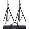 The Proline SPS502 speaker stands provide active performers and sound teams with superior stability and easy transportation. The steel bodies feature a huge 120-lb. load capacity to easily accommodate large speakers and their lightweight aluminum shafts make them easy to move from gig to gig. The stands feature 11 adjustment holes offering precise speaker height placement, while their locking pins and locking shaft knobs ensure safe setups time after time. Plus, the generous, 8 mm padded ergonomic carrying bag makes transportation and storage quick and easy.