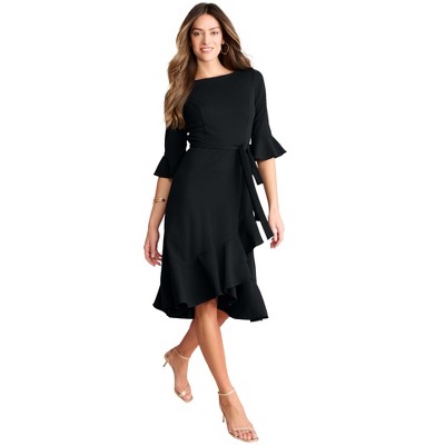 Roaman's Plus Size Flutter Sleeve V-Neck Fit And Flare Bi-Stretch Maxi Dress