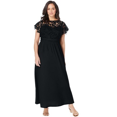 Roaman's Plus Size Flutter Sleeve V-Neck Fit And Flare Bi-Stretch Maxi Dress - 1 of 2