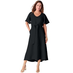 Roaman's Plus Size Flutter Sleeve V-Neck Fit And Flare Bi-Stretch Maxi Dress - 1 of 2