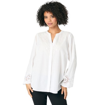 Roaman's Lace-Trim Blouson-Sleeve Top