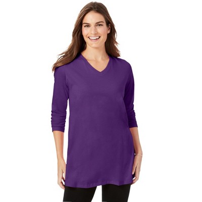 Roaman's Plus Size Boatneck Swing Ultra Drape Tunic Top - 42/44, Midnight Violet