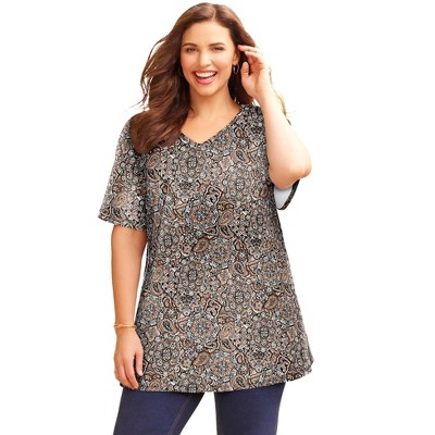 Roaman's Plus Size Cotton Ultimate V-Neck Tee