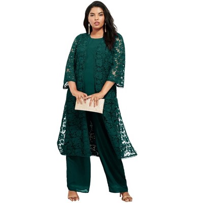 Roaman's Plus Size Long Sleeve Shawl-Collar Jacket & Sheath Skirt Set – 2-Piece Suit - 44 W, Ice Jade