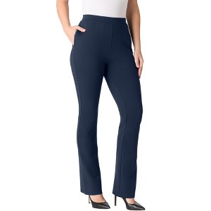 Roaman's Plus Size Ponte Bootcut Pant With Pockets And Pull On Elastic Waist - 1 of 2