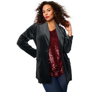Roaman's Plus Size Shawl Collar Velour Blazer - 1 of 2