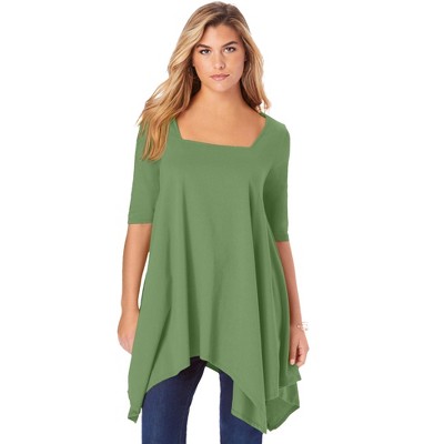 Roaman's Plus Size Slub V-Neck Boyfriend Tunic Top