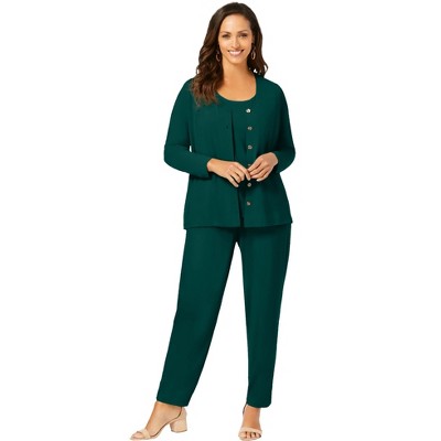 Made from a super lightweight knit,this 2-piece twin set surely makes the case for feminine style. A border-printed flyaway jacket with three-quarter sleeves sits atop a scoop-neck tank for relaxed style that can easily go from day to dinner and beyond.