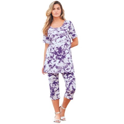 A stunning set with an eye-catching print elevates your look like no other. Crew neckline with curved hem and side slits.Elasticized pull-on legging. Print-detailed side seaming.