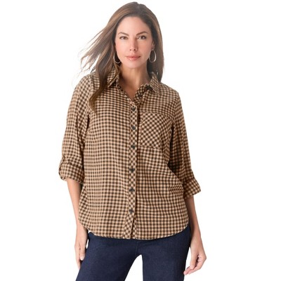 Roaman's Classic Plaid Button-Front Shirt