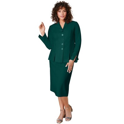 Roaman's Plus-Size Asymmetrical Lace Pant Set –Long Sleeve Lace Scalloped Tunic & Elastic Waist Pants - 44 W, Emerald Green