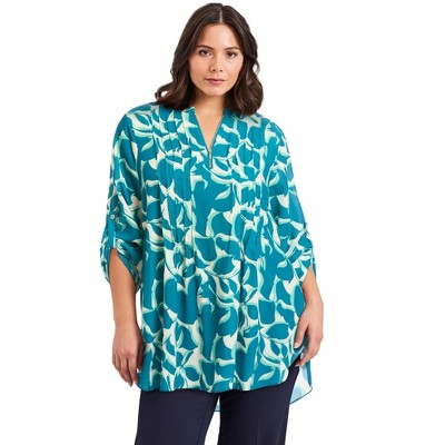 This flowy tunic with three-quarter sleeves is designed in a just-right length for easy outfitting with leggings and jeans.