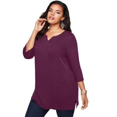 Roaman's Plus Size Cotton Ultimate Boatneck Tunic With Side Slits