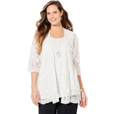 Roaman's Bolero Cardigan With Three Quarter Sleeves - 4X, White