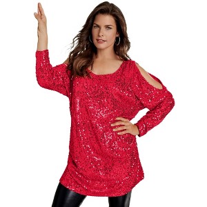 Roaman's Cold-Shoulder Sequin Tunic - 1 of 4
