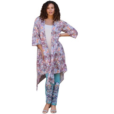 Roaman's Plus Size Crinkle Chiffon Tie Front Duster - 28 W, Multi Watery Floral