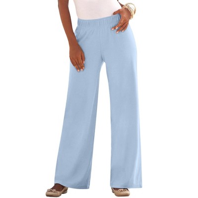 Roaman's Plus Size Soft Knit Capri Pant With Drawstring Waist - 2X, Pale Blue