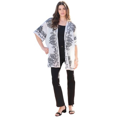 Roaman's Plus Size Rayon Embroidered Duster - 1 of 2