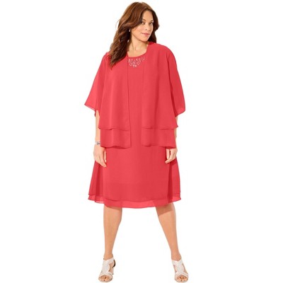 Roaman's Plus Size Elbow Sleeve Fit-And-Flare Dress With Bolero Jacket – 2-Piece Suit - 1 of 4