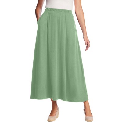 Roaman's Ultrasmooth Fabric Midi Skirt - 6X, Olive Batik Border