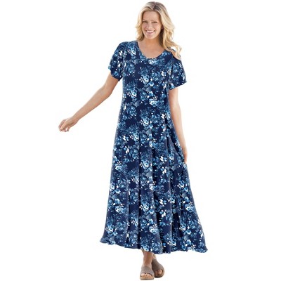 Roaman's Plus Size Hand Crinkled Flutter-Sleeve Maxi Dress