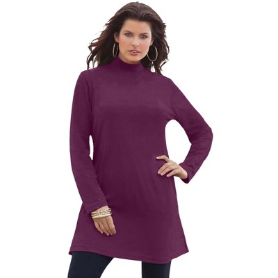 Roaman's Georgette Mesh Overlay Top - S, Dark Berry