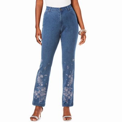 Roaman's Plus Size Invisible Stretch Rhinestone-Detail Split Flare-Leg Jean