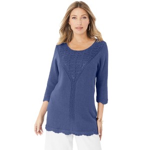 Roaman's Lace Knit Pullover Sweater - 1 of 4