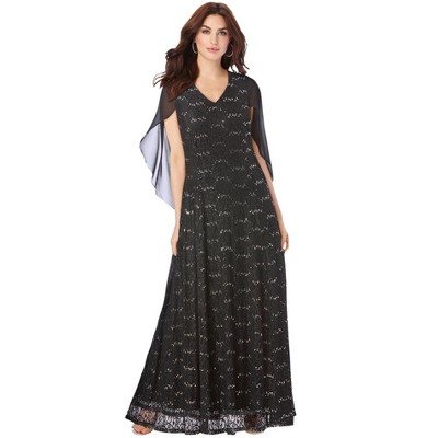 Roaman's Plus Size Sparkle Lace Popover A-Line Gown With 3/4 Sleeves