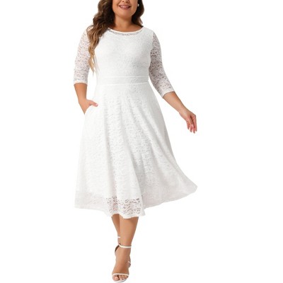 Roaman's Plus-Size 3/4 Sleeve Boatneck Lace Swing Dress