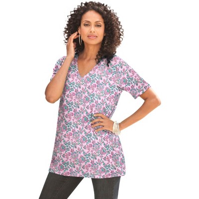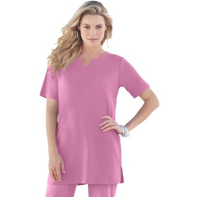 Roaman's Ultimate Long Sleeve Henley Tee With Sweetheart Neck - 5X, Mauve Orchid