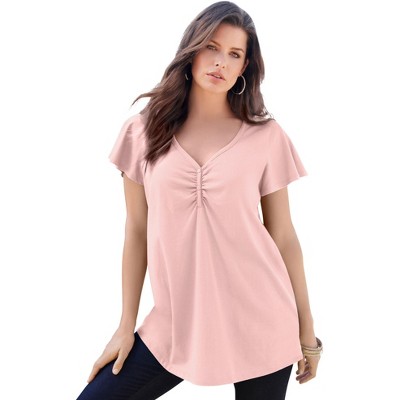• This style is part of our Swing Tee collection, featuring swing silhouettes that nicely drape over your curves and are comfortable to wear all day. A keyhole closure at the back of the neck offers a touch of convenience.