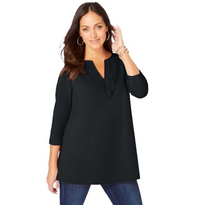 Roaman's Plus Size Soft Knit Tunic With Notch Neckline